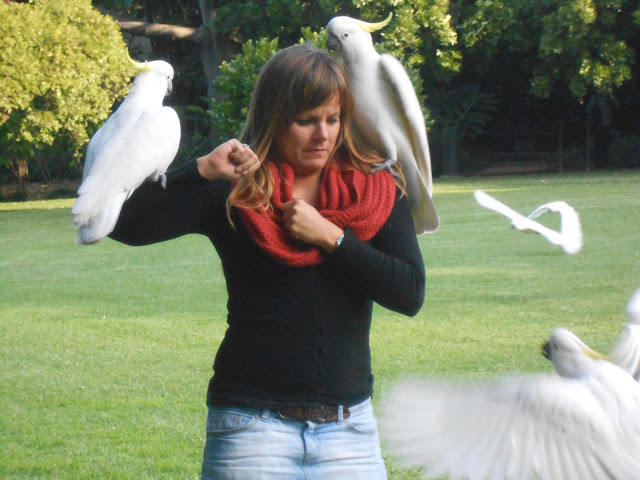 The lass with the cockatoos looks a little alarmed when they are perched all over her. They do scratch sometimes. Great photos.